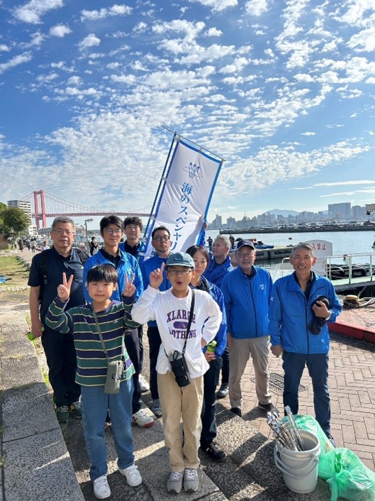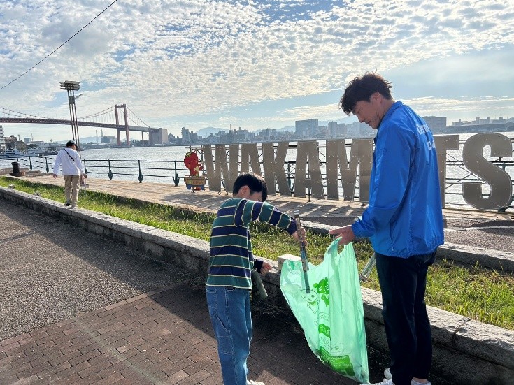 その翌日に、北九州市の職員の皆さま、濱田海運株式会社の社員の皆さま、そして当社社員および家族が力を合わせて、若松区の海岸沿いの清掃活動を行いました。