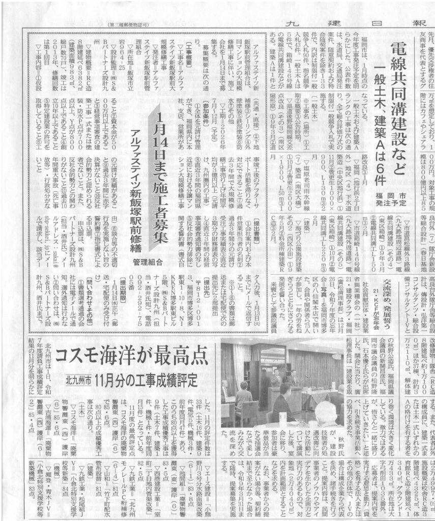 九建日報に掲載されました ~工事成績評定